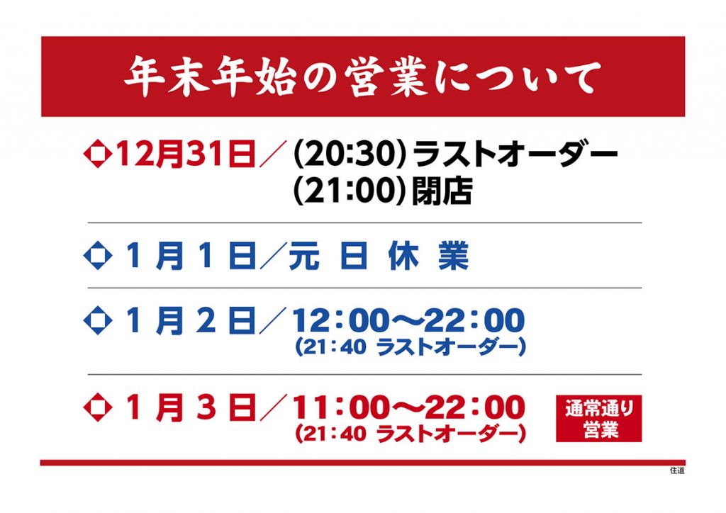 年末年始の営業時間。 [さんきゅう水産]平野店・吹田店・若江岩田店・八尾店・針中野店 (住道店・神戸店は別途記載)
