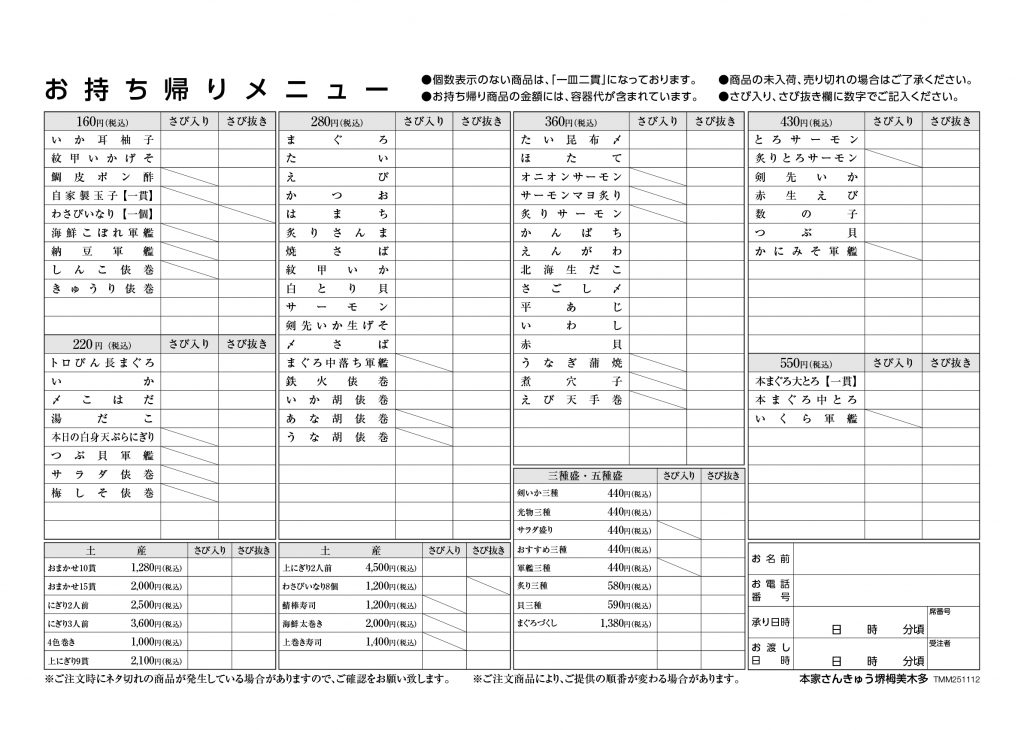 堺・美木多店 持ち帰り伝票